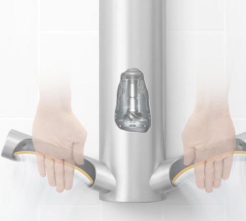 Мощный двигатель V4 Dyson с цифровым управлением вращается со скоростью 75 000 оборотов в минуту, пропуская через себя до 23 л воздуха в секунду, высушивая руки всего за 10 секунд в режиме Максимум1.