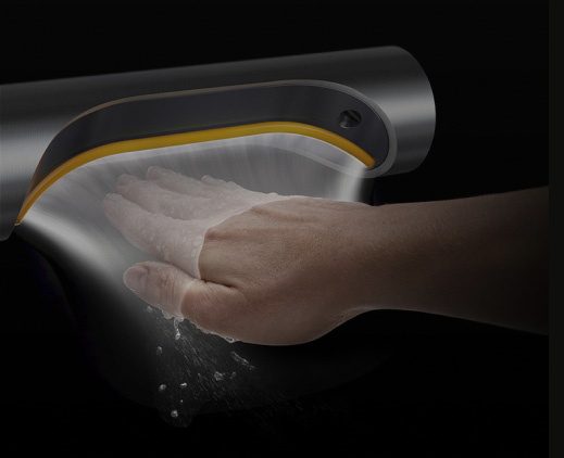 Два изогнутых отверстия шириной по 0,45 мм создают воздушные потоки со скоростью 624 км/ч5 повторяя контуры ваших рук, удаляют с них воду быстрее.